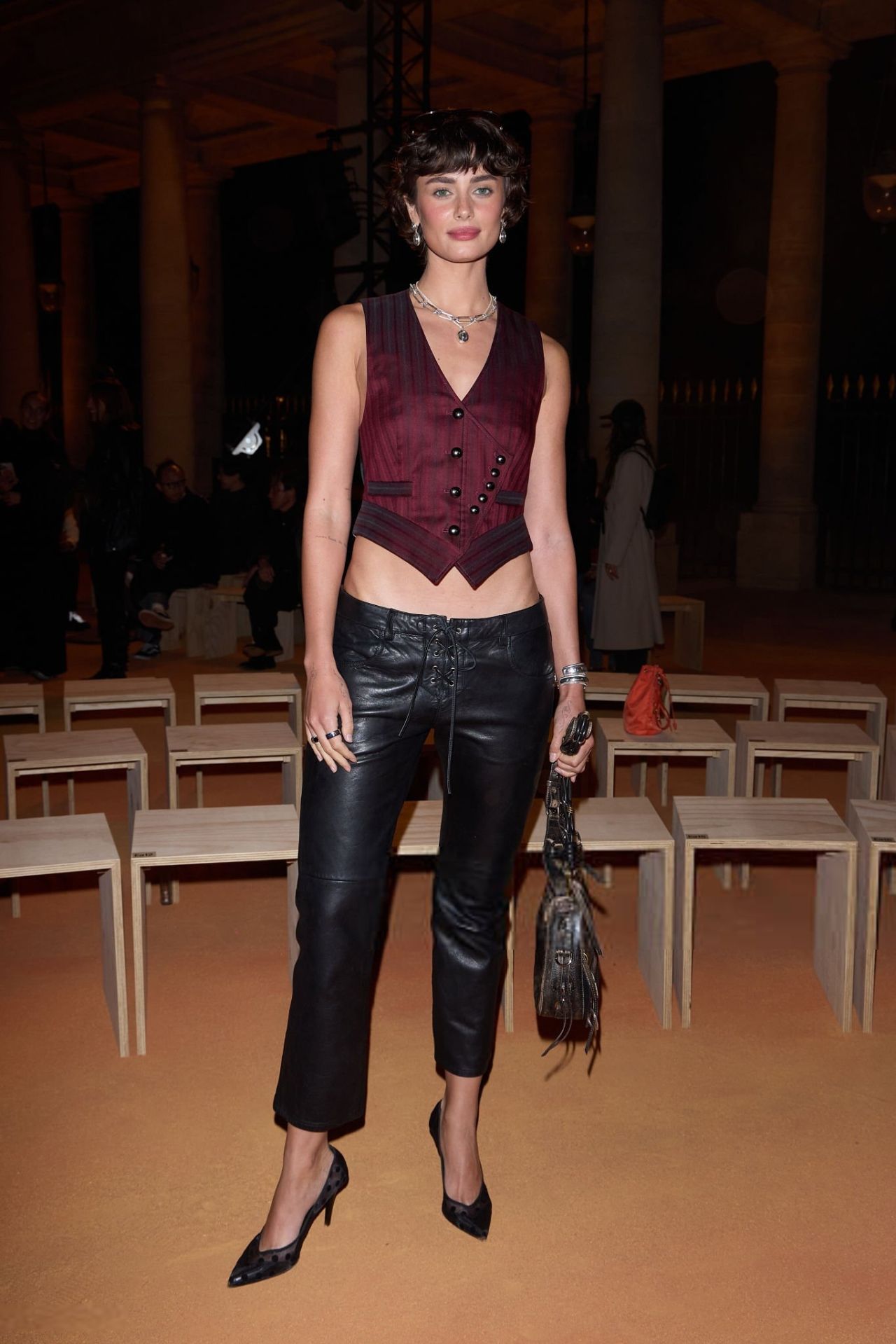 Model Taylor Hill, a prominent figure among popular celebrities, expertly channeled a modern grunge-glamour aesthetic as a front row fashion guest at the Isabel Marant show in Paris on October 2, 2025. Her choice, which merged traditional menswear elements with revealing, contemporary proportions, was a definitive statement of event appearance style. The look perfectly captures the zeitgeist of reimagined ’90s counterculture, anchored by precise tailoring and contrasting textures. Hill’s approach to the fashion show guest circuit is consistently insightful, using her outfits to communicate a confident, edgy point of view.